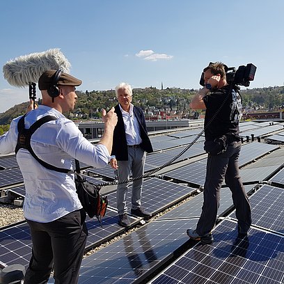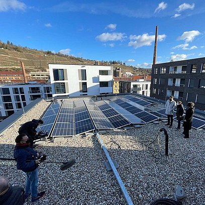 Ein Team des ARD drehte am gestrigen Vormittag im Klimaquartier Neue Weststadt in Esslingen, um Aspekte klimaneutralen Wohnungsbaus exemplarisch zu…